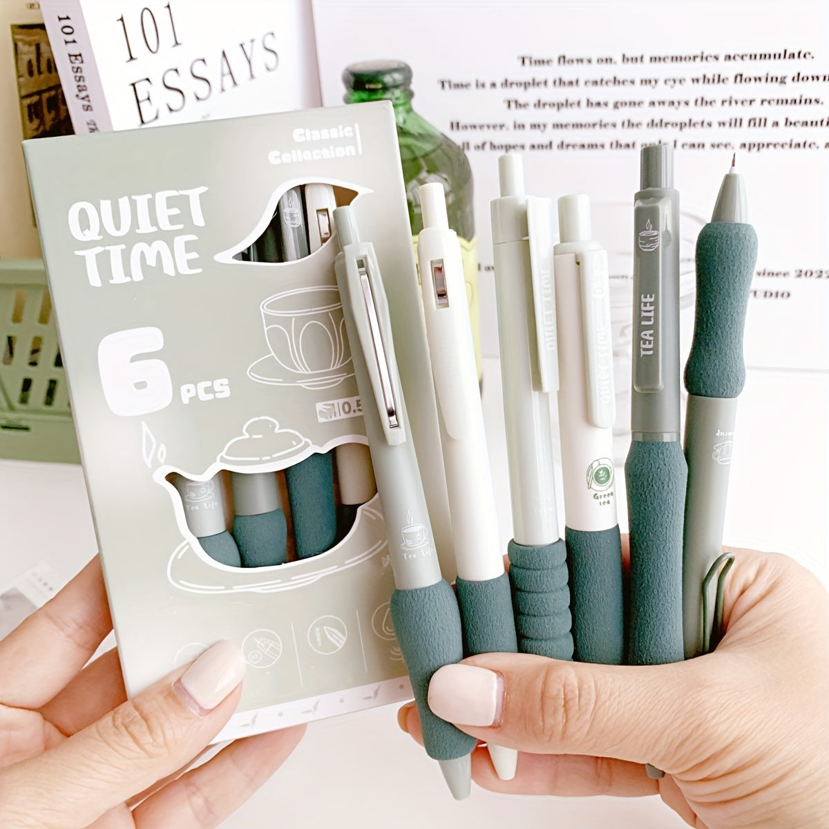 6-Pack Dopamine Soft Grip Relax New Year Gift Click Pen for Students, 0.5mm Black Ballpoint Pens