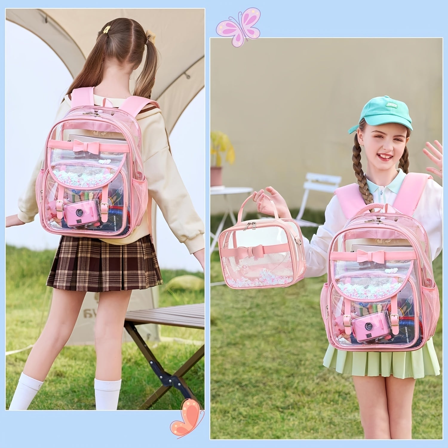 Clear Backpack for Girls and Boys 2 count Bookbag Stadium Approved Daypack Transparent School Bag