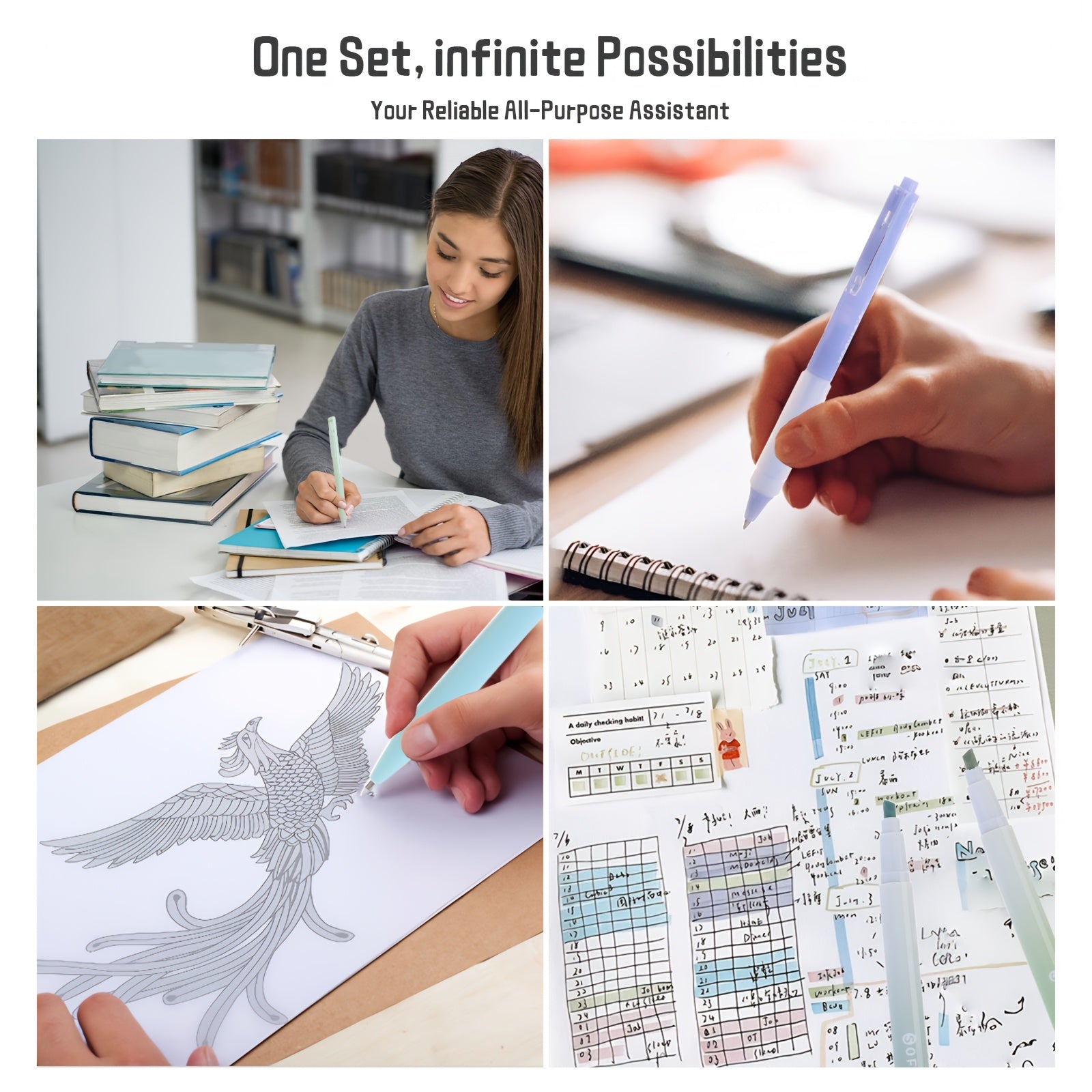 Colorful Pen Set 10 Black Ballpoint Pens, 6 Automatic Pencils