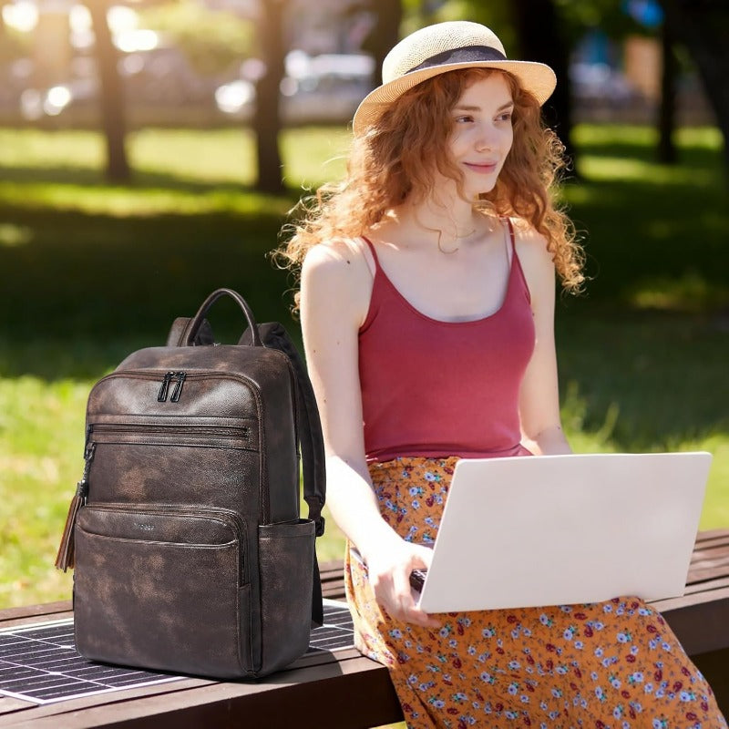 Laptop Backpack for Women 15.6 inch Laptop Leather Backpack Fashion Travel Backpacks for Work College Coffee